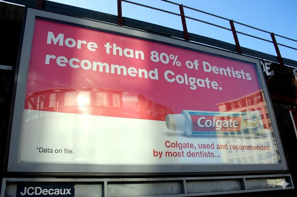 In 2007, Colgate ran extensive ads claiming that “More than 80% Of Dentists recommend Colgate” and “Colgate, used and recommended by most dentists”. In fact, the dentists had been asked what brands they recommended to their patients – nearly all recommended several brands, among which was Colgate. But the phrasing of the ad implied that Colgate was an overwhelming preference when in fact it was recommended no more often than other brands. The UK Advertising Standards Authority (ASA) found the ads to be misleading, and forced the company to discontinue the ads. This case is frequently cited as an example of misleading statistics in advertising.